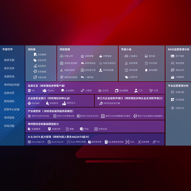 医疗器械产品上市前,,,,要熟悉严格与繁复评审标准,,,,整理分析监管机构指导文件中的海量信息。。企业急需一个智能化解决方案,,,,提升知识管理效率,,提高评审通过率,,以提升其市场竞争力。。。。