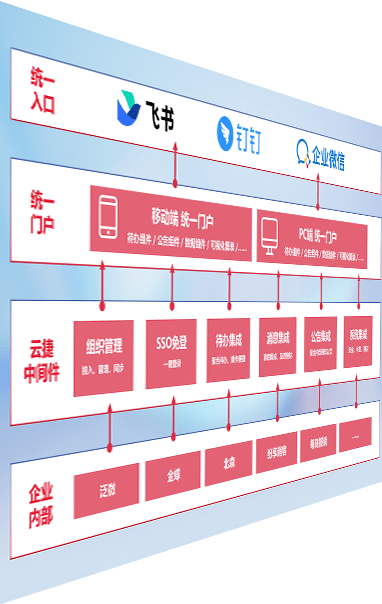 对协作平台提供支持服务,,,支持企业应用与协作平台对接,,,,包含组织同步、、、消息集成、、、待办集成等。。。。支持目前主流的协作平台:钉钉、、、企微和飞书。。。。